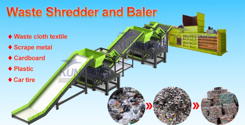 Heavy Duty Industrial Waste Shredder and Baler Plastic Metal Cardboard Shredder Packing Machine